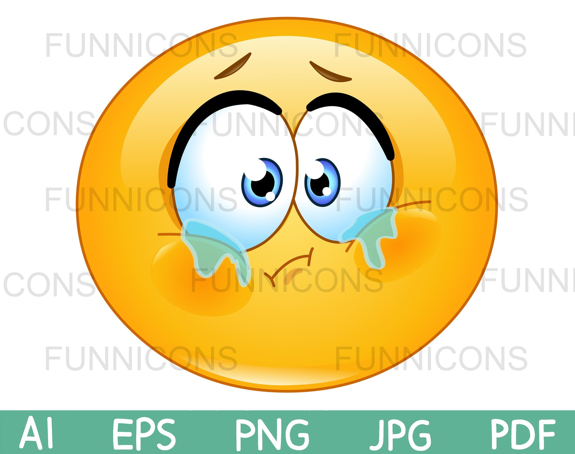 Crying, sad and forlorn emoji.